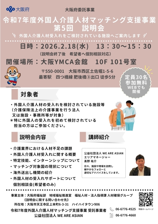 第3回 大阪府外国人介護人材マッチング支援事業説明会のご案内