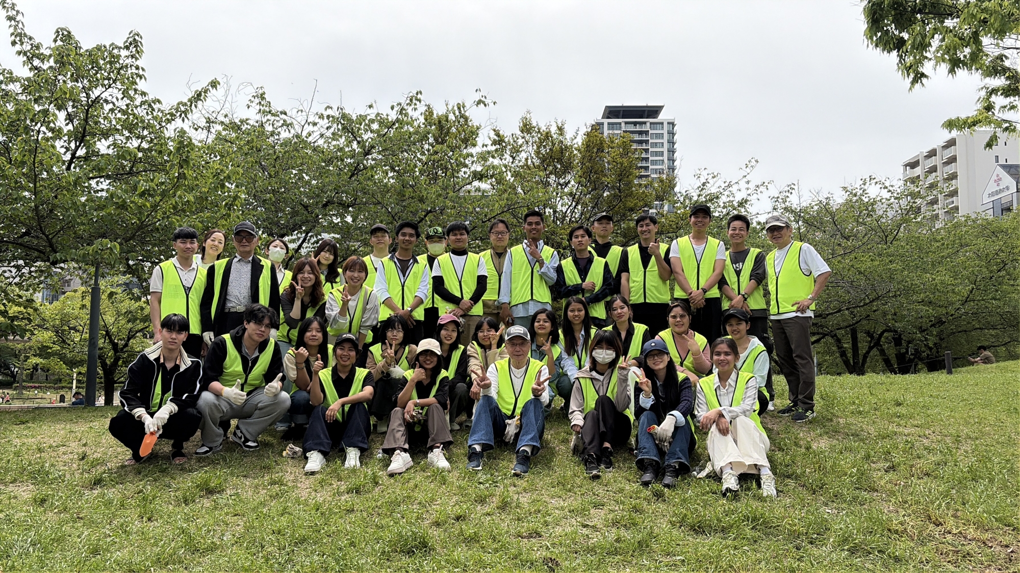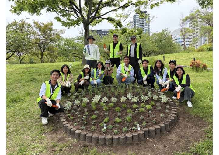 大阪の扇町公園にて、総勢40名にて、花(ハーブ類)の植え替えと清掃を行いました。ベトナム・ミャンマー・日本と国は違っていても同じ目的の為に